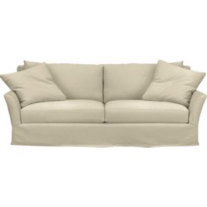 1. Consider size first. If you have a bigger living room, you'll need to decide exactly how much of the living room you want your couch to fill. Do you want to include other couches or chairs? Do you want a coffee table? If so, a simple sofa, or one with a slight L-shape is probably the best fit. If you're looking for a sofa that will be the focal point of your living room, look for rounder couch shapes that take up a bit more room and provide a lot of seating. Here's a great example of a strong and simple sofa from Crate & Barrel.
